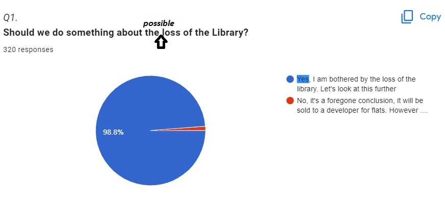 Those who answered were worried not just about the loss of the library, but also the loss of a public building with many potential uses, the loss of public green space and the loss of a piece of architectural heritage.