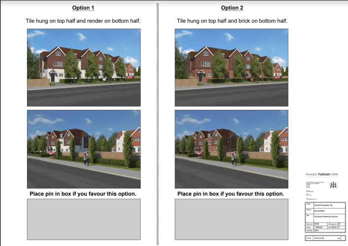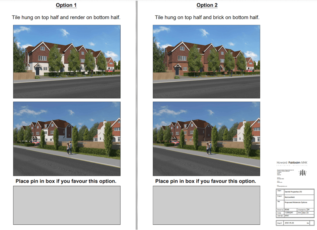 You will see below that Denhill have looked at using render for the lower parts of the new houses but have also looked at facing bricks as an option as they are aware that Croydon Planning Department tends to dissuade its use.