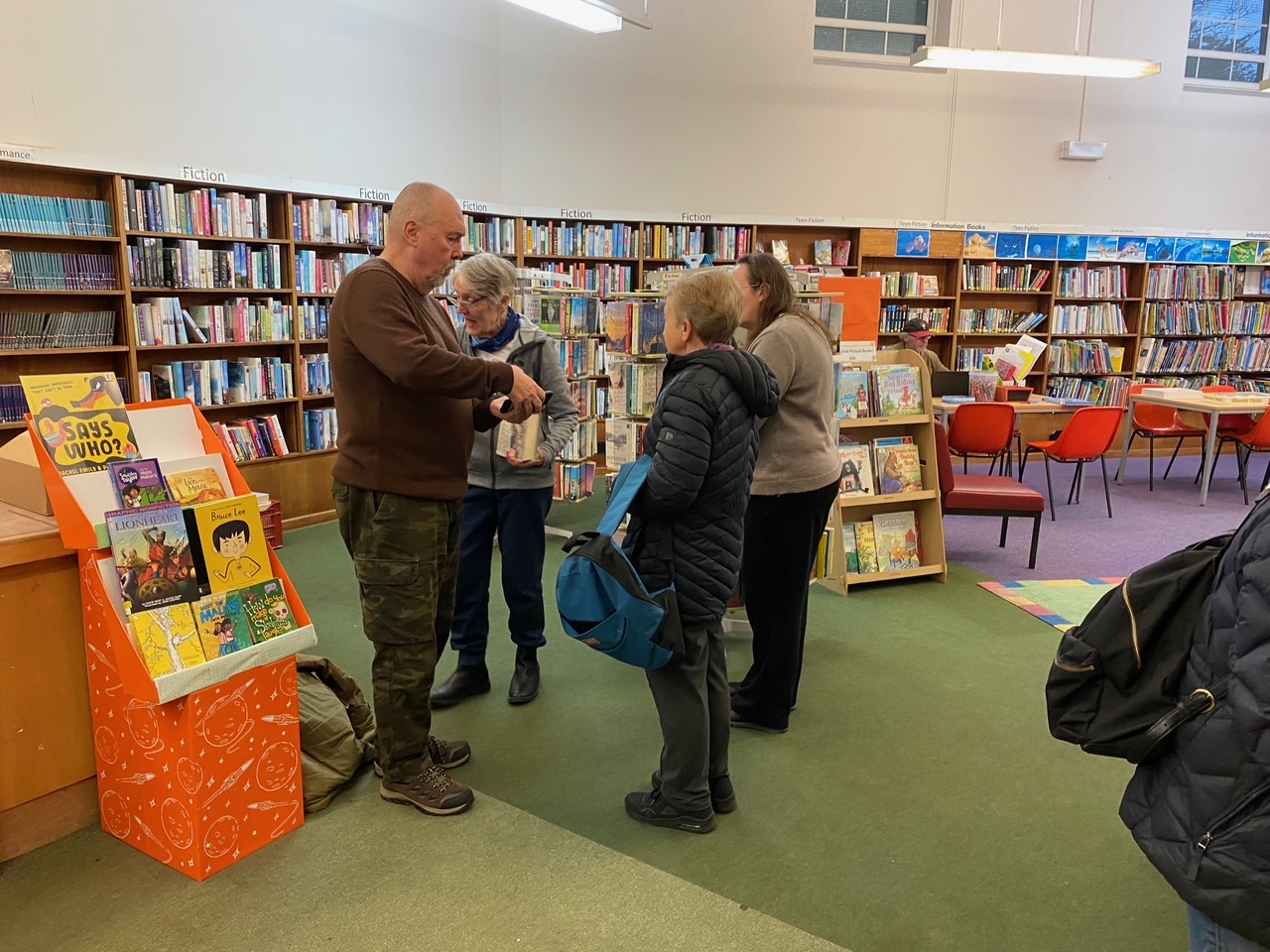 We, that is four committee members and Councillor Helen Redfern, went to the library yesterday afternoon with some wine and crisps to toast the incredible library staff and thank them for all their hard work.